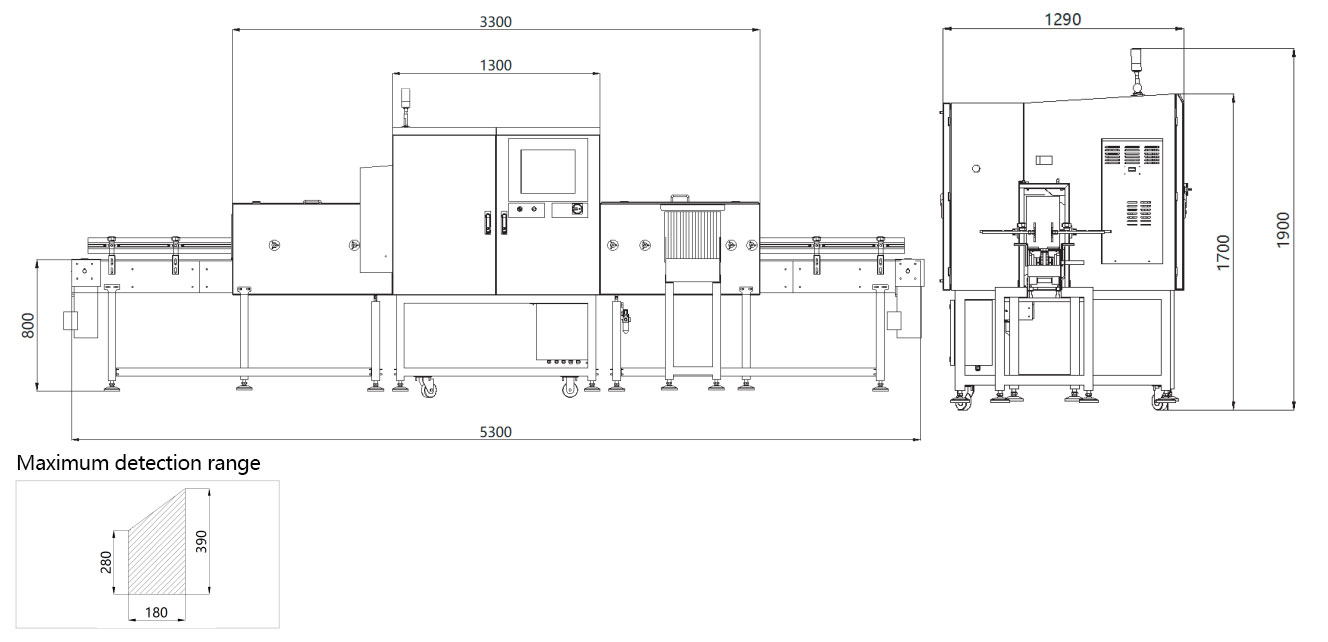 Remarks: The size of detectable foreign objects is related to the material composition, packaging material, thickness and other parameters in the product. Please refer to the actual product test results.